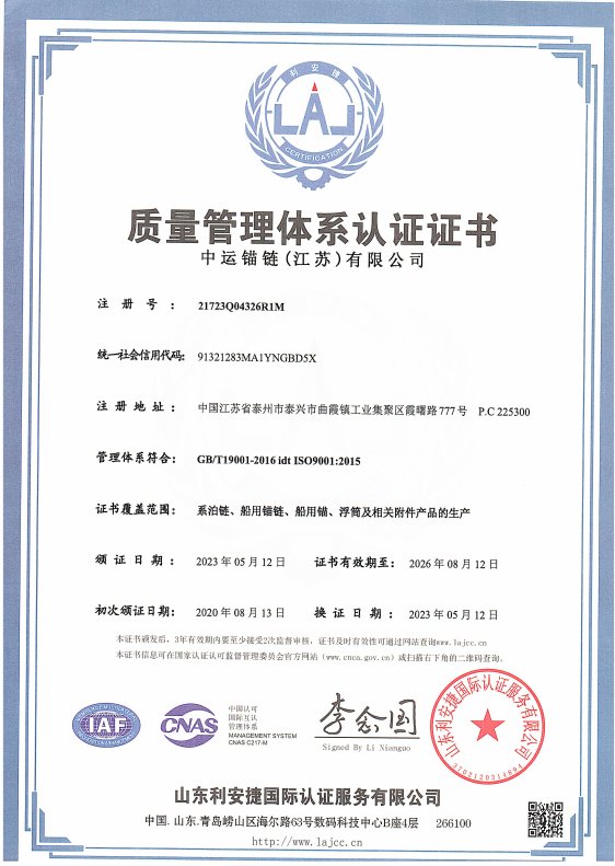 中運是全球領先的船用錨鏈、海洋系泊鏈制造及系泊系統一站式解決方案供應商,集船用錨鏈、海洋系泊鏈、船舶及海工鍛件、船舶及海工鑄造件、系泊系統等產品的研發、設計、生產、銷售、安裝于一體的大型船舶及海洋裝備制造企業。業務覆蓋船舶制造、船舶維修、深海科技、海洋工程、深海油氣平臺、漂浮式風力發電、深海漁業養殖、深海系泊系統、軍工等領域。集團成立于2012年,隨著業務的快速發展,2019年在江蘇泰興成立中運錨鏈(江蘇)有限公司,2022年將集團總部遷至江蘇宿遷,正式成立中運海洋裝備(江蘇)股份有限公司。